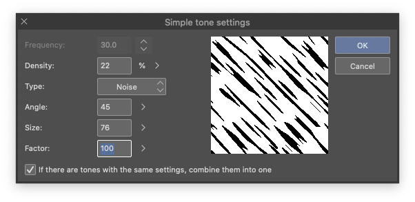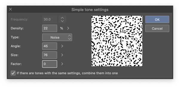 - unchecked: every time you fill the selection with a tone, create a new tone layer